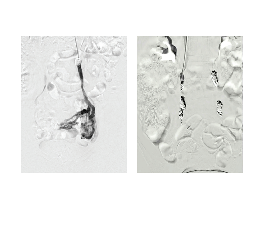 As part of EMBOLIZE, we also evaluate the internal iliac veins, which are another major drainage pathway of the pelvis. We inject contrast, and if there are residual veins visible, and they weren’t already pre-closed with the initial injection, then those can be treated via the internal iliac system. Otherwise, we may inject additional sclerosis into the internal iliacs, but we don’t place coils there because we worry about coil migration.